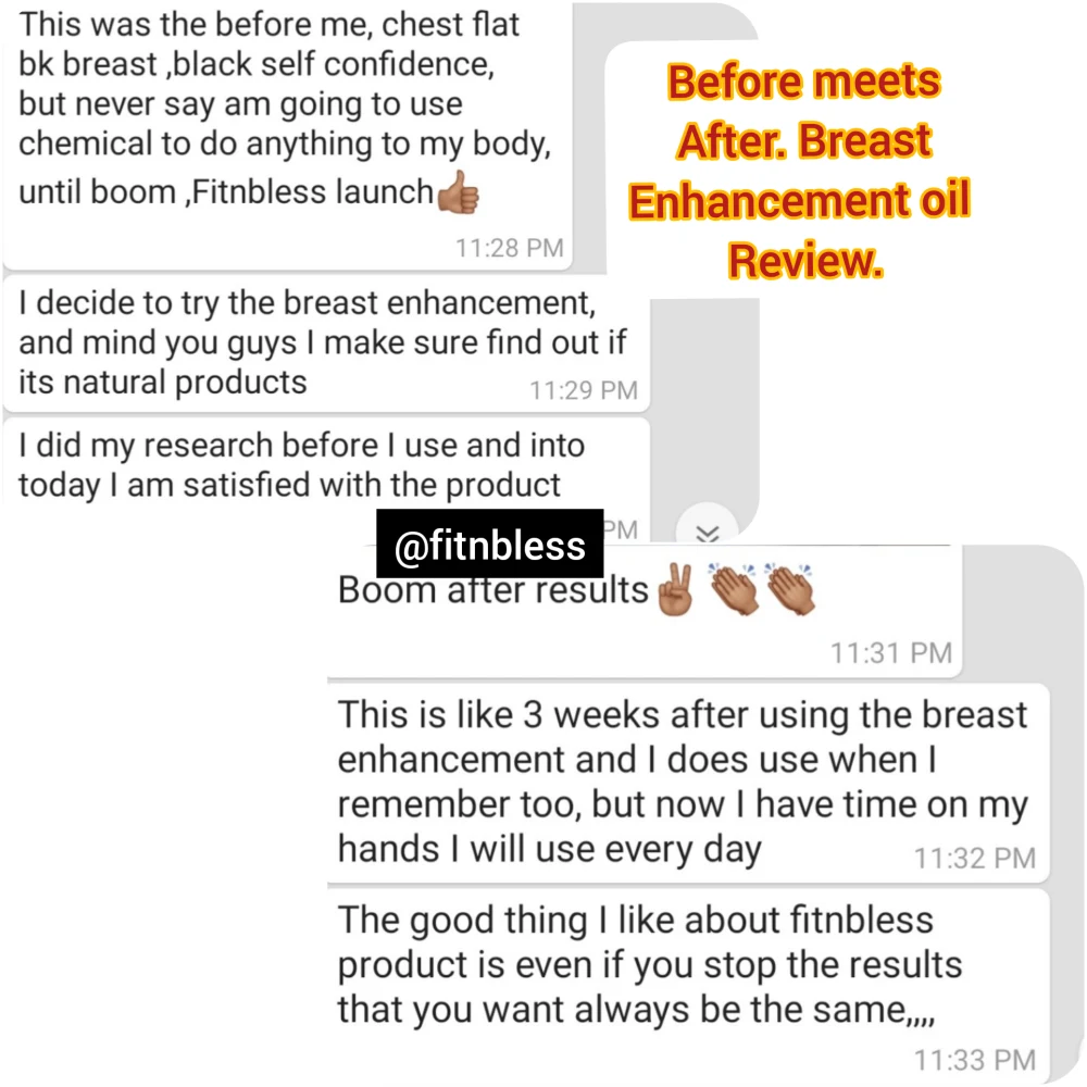 Breast enhancement oil grows the breasts, makes it rounder and also lifts the breasts and makes them stand.